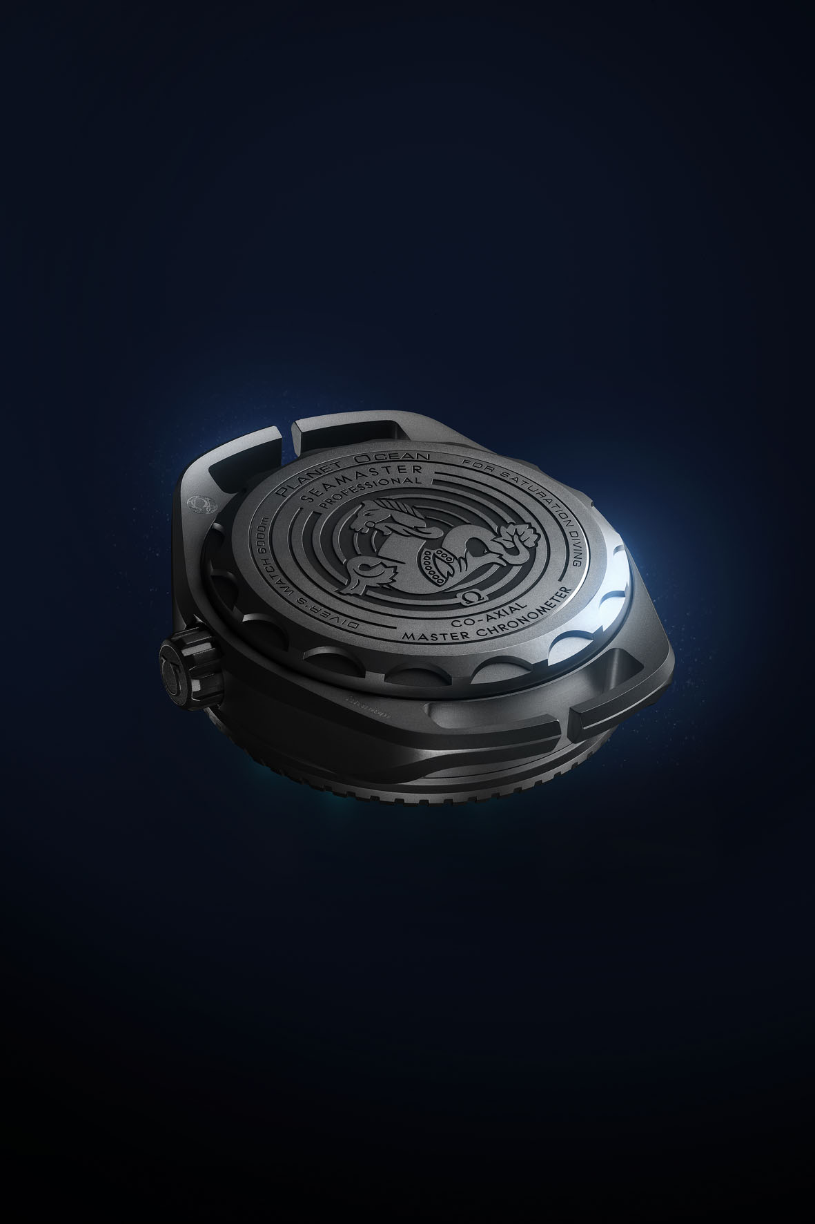 Girando il segnatempo si scopre un fondello in titanio grado 5 con l’emblema del Sonar inciso al laser e l’iconico ippocampo OMEGA al centro. Include l’iscrizione “Diver’s watch 6000 m for saturation diving”, che ribadisce le credenziali avventurose dell’orologio. (Prezzo €. 13.100)