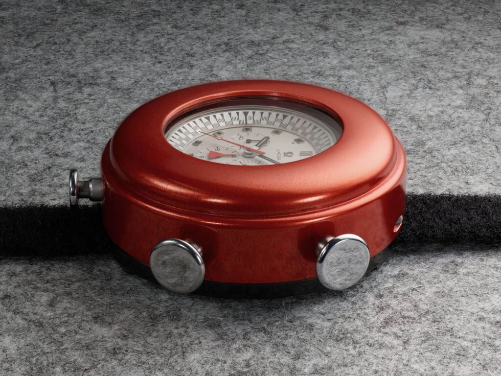 Quest’ultima ha un quadrante bianco, lancette nere a forma di capsula per i contatori del cronografo e una lancetta rossa dei secondi cronografici. Ciò che è cambiato è l’uso del Super-LumiNova al posto del trizio. Per quanto riguarda la cassa esterna rossa, è un po’ diversa da quella dell’Alaska II del 1970. Reca un testo in cui si specifica che si tratta dell’orologio “Alaska Project”, uno “strumento per temperature estreme nello spazio”. Inoltre, la scala dei 60 minuti non è evidenziata in argento e anche il retro è diverso: l’originale aveva il colore alluminio, la versione del 2008 è tutta rossa.