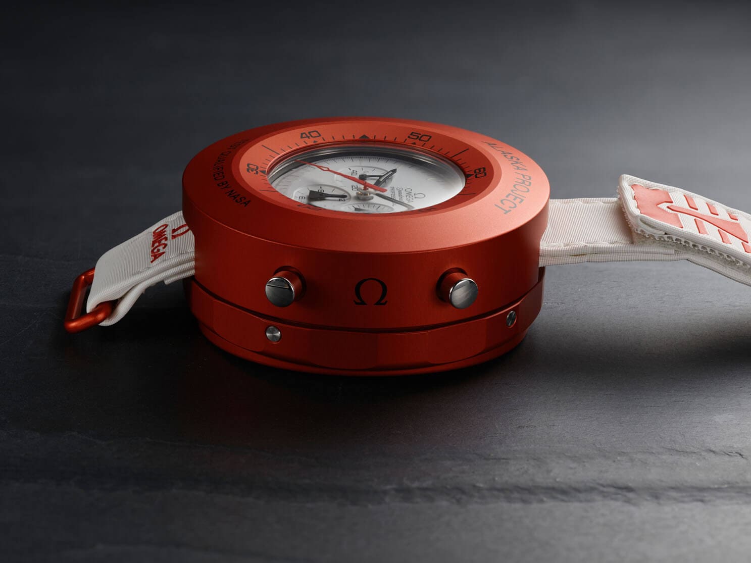 Il primo prototipo di Speedmaster che Omega completò secondo queste richieste fu l’Alaska Project in titanio nel 1969. Il movimento, basato sul calibro Omega 861, utilizzava diversi materiali e oli per resistere alle alte temperature, e la cassa era protetta da una cassa esterna rossa in alluminio anodizzato. Inoltre, l’orologio aveva un quadrante argentato/bianco per riflettere meglio la luce solare e il calore. Da qui l’origine del quadrante bianco per queste serie