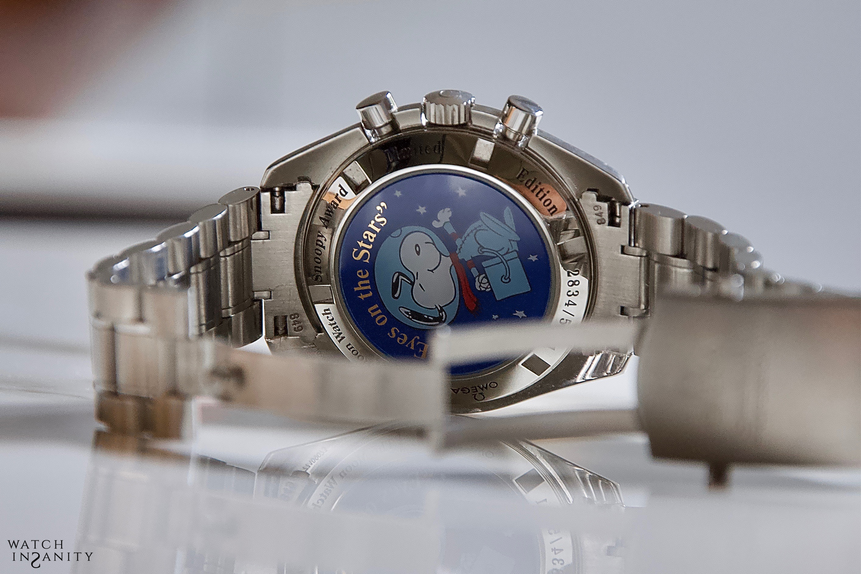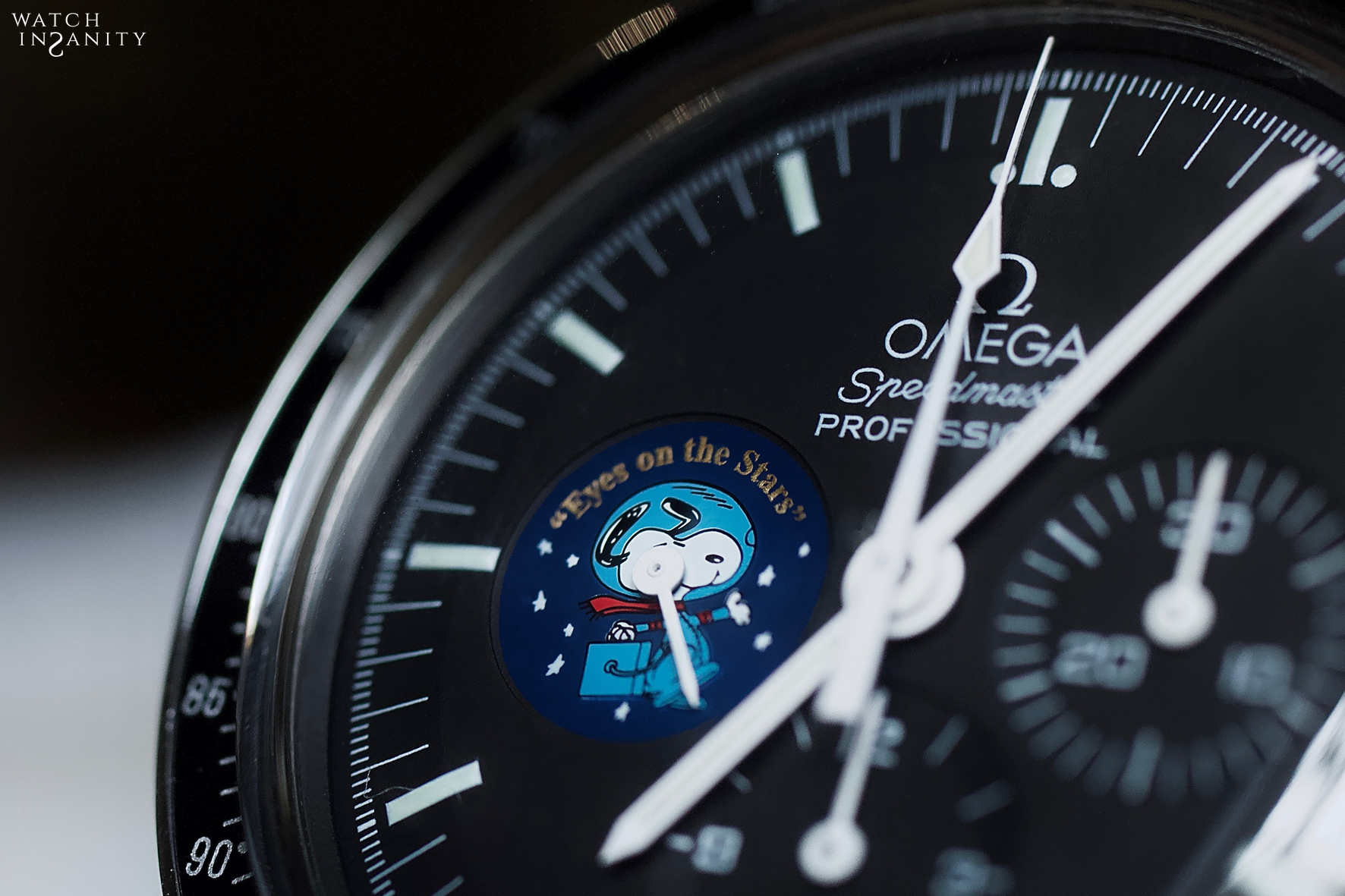 Snoopy, il famoso beagle dei Peanuts scelto dalla NASA come mascotte già nel 1968, decora il quadrante e il fondello del segnatempo, in tributo al Silver Snoopy Award attribuito ad Omega nel 1970 in riconoscimento per il sostegno dato al programma Apollo. Lo Snoopy Award, una sorta di diploma con il personaggio di Snoopy vestito da astronauta e lo slogan Eyes on the Stars, è assegnato alle aziende che danno un contributo eccezionale al successo dei voli spaziali. Nel caso di Omega, per il suo ruolo nella missione Apollo 13: quando la maggior parte degli strumenti di bordo era stata disattivata per risparmiare energia, alcune delle manovre dovevano essere cronometrate dal cronografo dello Speedmaster, in particolare il tempo di combustione dei motori a razzo per impostare la traiettoria di rientro della navicella spaziale.