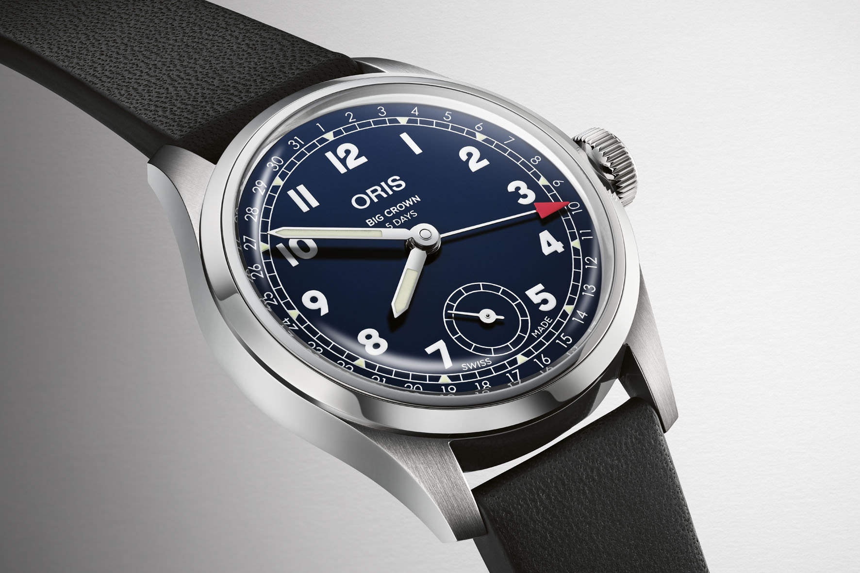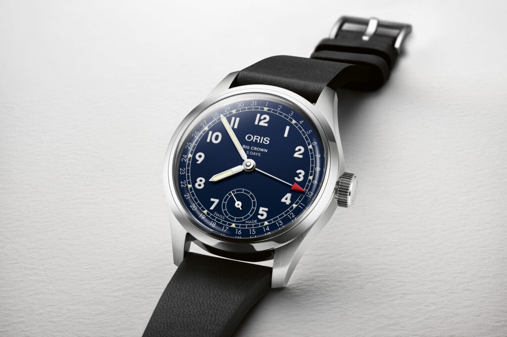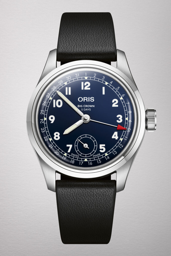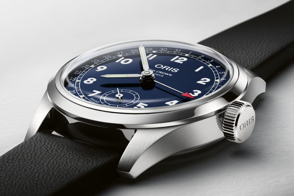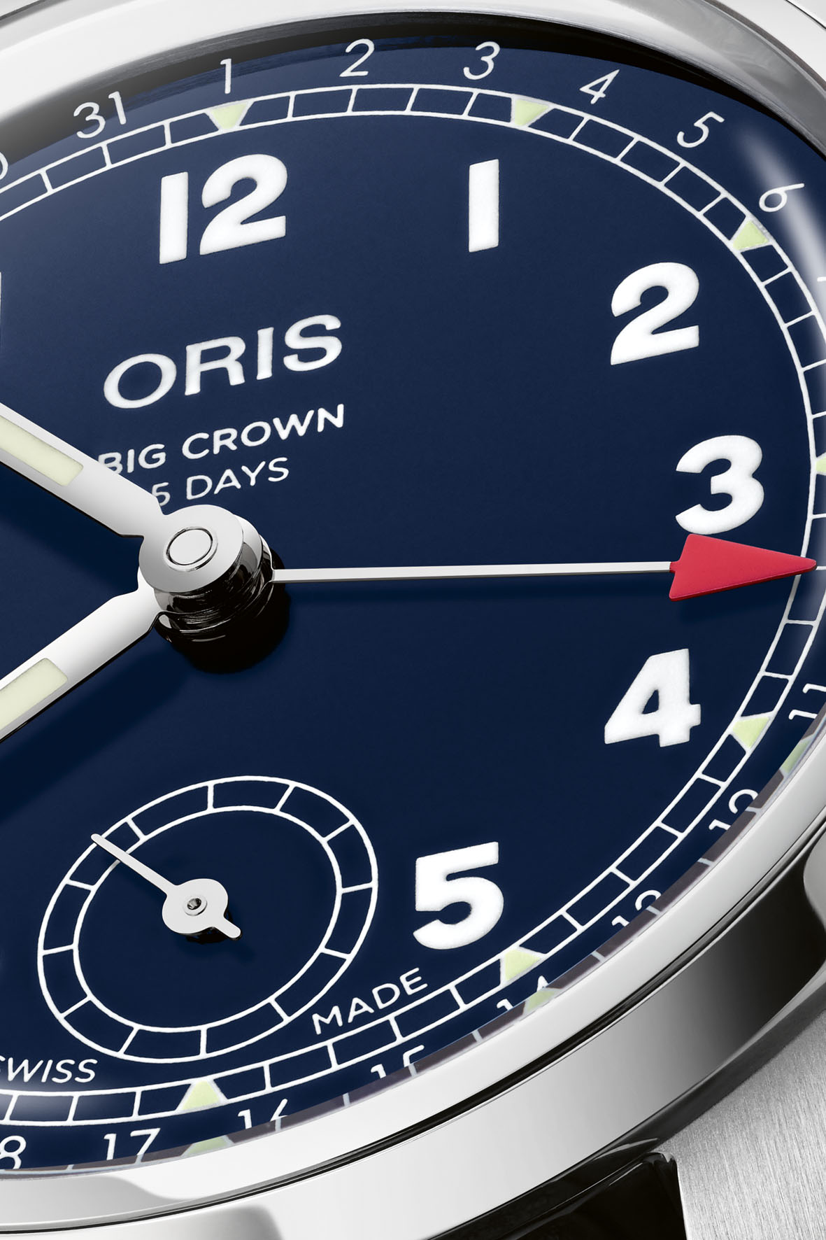 Nel 1938, Oris abbinò la corona sovradimensionata alla complicazione dei piccoli secondi e della data, indicata sul rehaut interno dell’orologio attraverso una lunga lancetta a forma di freccia. L’abbinamento non fu solo tecnico, ma anche nominale, perché l’orologio divenne celebre come Big Crown Pointer Date. Da lì, divenne anche sinonimo di Oris per tutti gli appassionati.