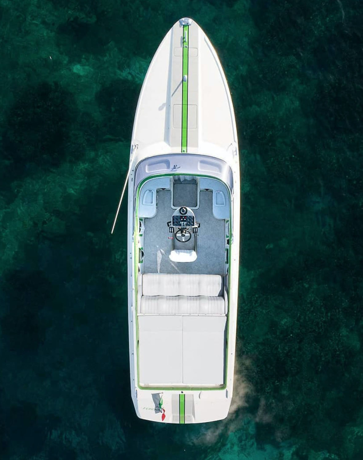 Di base tutto ciò che ha un motore a scoppio mi appassiona. Ho lasciato perdere le moto perché sono tanto meravigliose quanto pericolose; ne ho una in salone a casa mia, che era di mio padre e che ho restaurato alcuni anni fa, una Honda 750 Four. Era la moto con cui negli anni ’70 lui e mia madre giravano per la Sardegna e la Corsica. In quanto a barche, vivo in Costa Smeralda e sono stato in barca a vela per anni, affittandone una ad agosto senza mai scendere una volta a terra, in porto, stando sempre in rada. Io, gli amici e il mare: questa era la vacanza per me. Per le barche a motore ringrazio invece Renato Della Valle, l’imprenditore che me ne ha fatto innamorare. Fu lui a creare il mito del Montecarlo Offshorer, disegnato da Carlo Riva e fatto diventare da Della Valle l’Aquarama degli anni ’80. Ho comprato una di queste barche tre anni fa e l’ho restaurata. Insieme a Giorgio Colombi ho fondato un piccolo cantiere The Restorer (@the_restorer_) che si occupa solo di rilanciare questo meraviglioso progetto di Carlo Riva.