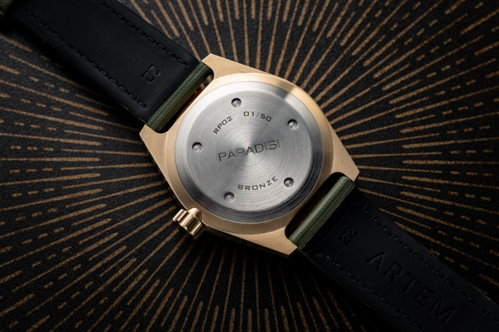L’RP02 è stato presentato al pubblico lo scorso settembre a Vicenzaoro. Per realizzare questo modello ho scelto leghe come il titanio grado 23 e il bronzo Ampco 18, oltre all’acciaio 904L, utilizzato anche nell’RP01. Ho scelto queste leghe perché hanno prestazioni in termini di resistenza alla corrosione e di biocompatibilità davvero uniche. Così come unici, per difficoltà, sono i loro parametri di lavorazione, ma l’esperienza acquisita per la realizzazione del precedente modello ci ha sicuramente aiutati. L’impermeabilità nell’RP02 è di 1.800 metri, mentre il movimento è il Cal. G100 di La Joux-Perret con riserva di carica di 68 ore. Ho scelto questo ottimo movimento perché è altamente personalizzabile a seconda dei gusti e delle esigenza del cliente. In ogni caso l’RP02 è in continua evoluzione!