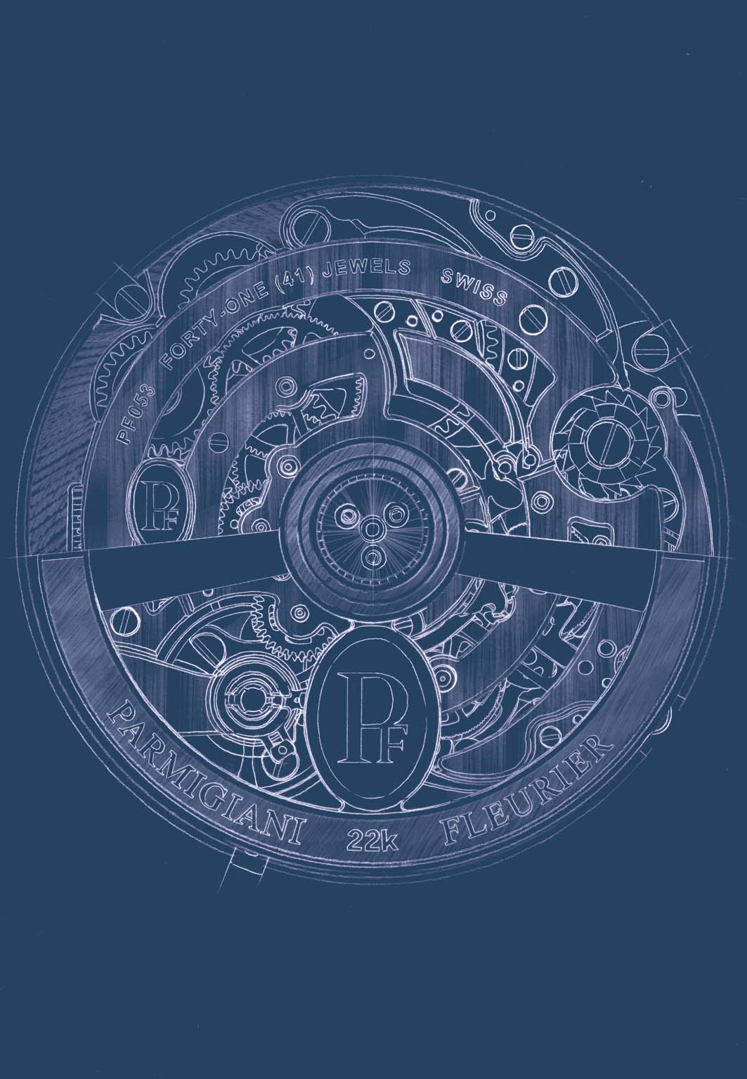 Cuore di questa invenzione è il nuovo calibro PF053, progettato esclusivamente per questo orologio attorno a una logica di apparizione e scomparsa. Non una variazione di un cronografo esistente, ma una struttura completamente nuova.