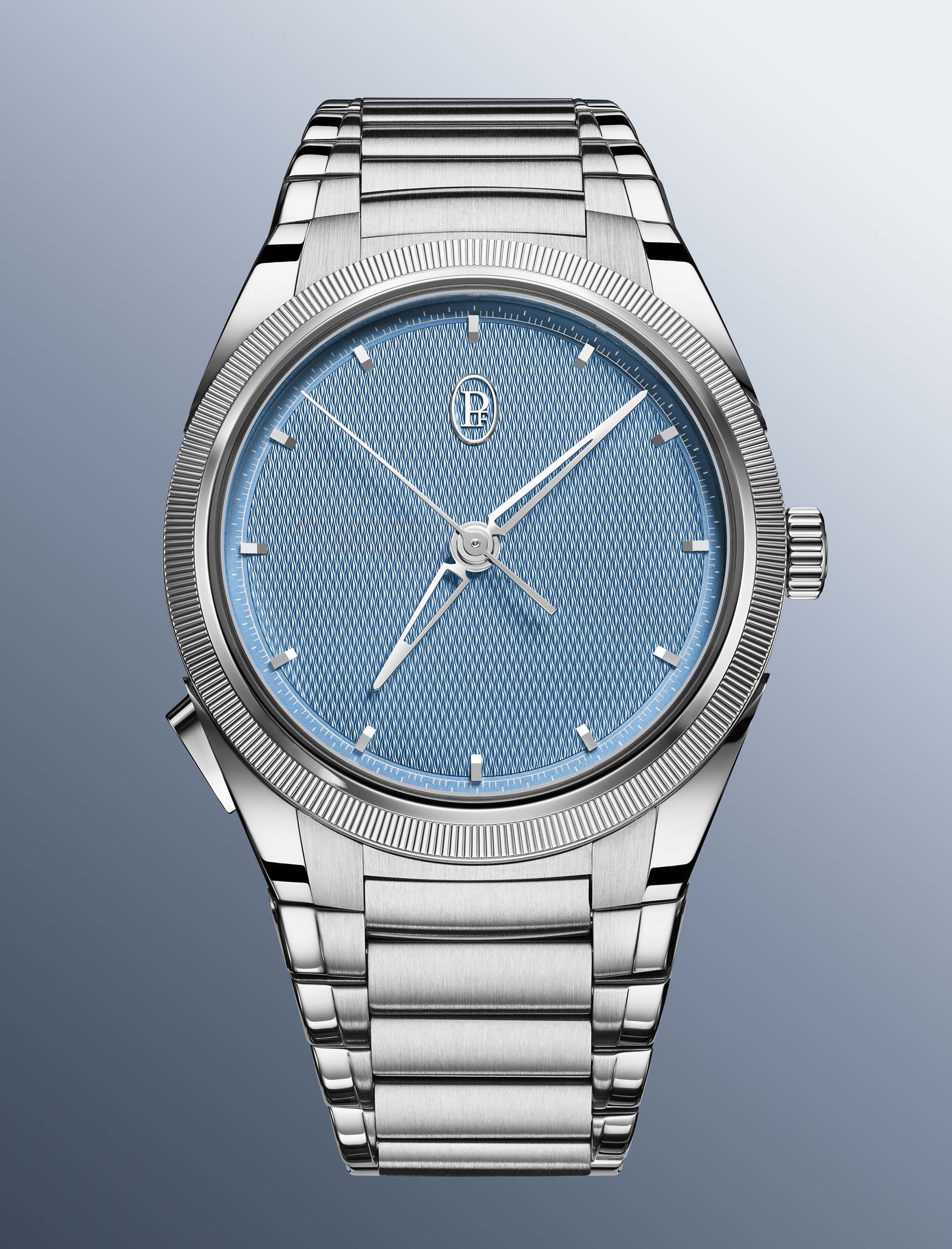 Se la meccanica innova in profondità, il design rimane fedele al lessico Tonda PF. La cassa da 40 mm in acciaio lucido e satinato, spessa 13 mm, è completata dalla celebre lunetta zigrinata in platino 950, elemento distintivo della collezione.