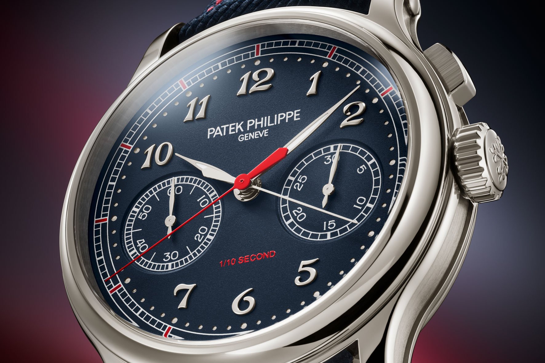 Per raccogliere questa sfida meccanica, la manifattura si è basata sul calibro CH 29-535 PS, il primo movimento cronografico Patek Philippe di architettura classica interamente progettato e realizzato in-house e protetto da sei brevetti. La frequenza è stata aumentata da 4 a 5 Hz (36.000 alternanze all’ora ossia dieci al secondo) e il movimento è stato dotato di un secondo meccanismo cronografico dedicato esclusivamente al decimo di secondo.