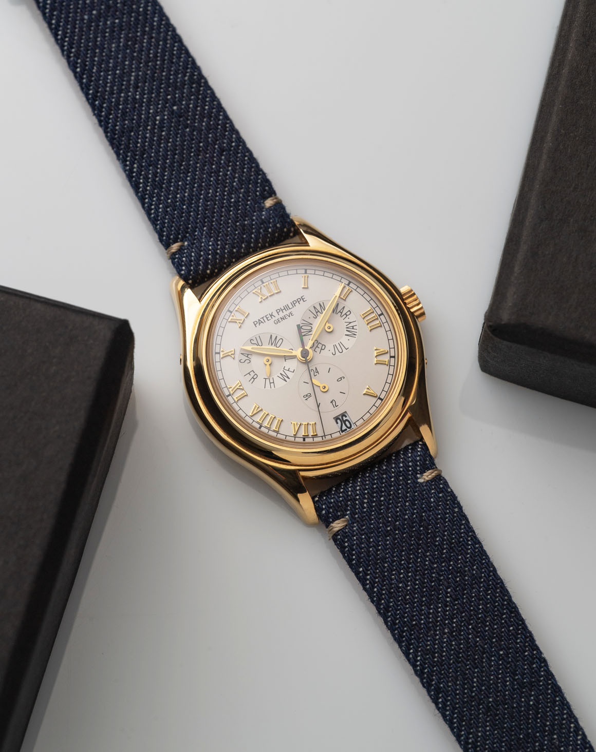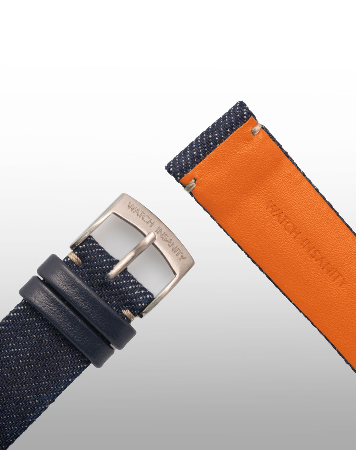 Realizzato in collaborazione con Candiani Denim, il MENTANA è un cinturino dal tocco vintage ideale sia per orologi classici che sportivi. Prodotto in denim KR7176 KN-Durance Rinser blu con fodera interna in pelle di vitello color arancione, si presenta come un modello piatto ribordato con cuciture laterali color écru abbinato ad una chiusura ad ardiglione in acciaio lucida o satinata.
