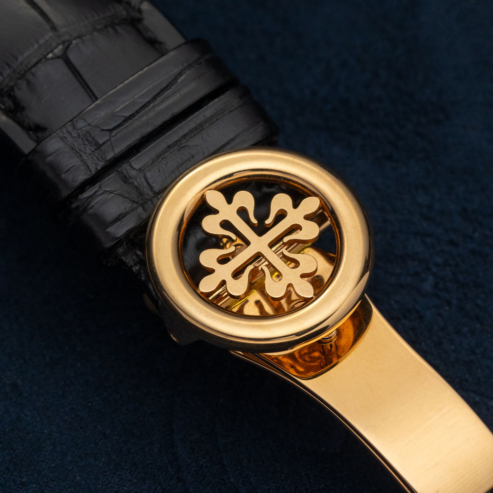 Le condizioni generali sono ottime, il quadrante, la cassa, le anse, la corona e il fondello non mostrano evidenti segni d’usura. L’orologio è dotato di cinturino in alligatore e fibbia in oro rosa originali, a cui è affiancato il corredo completo.