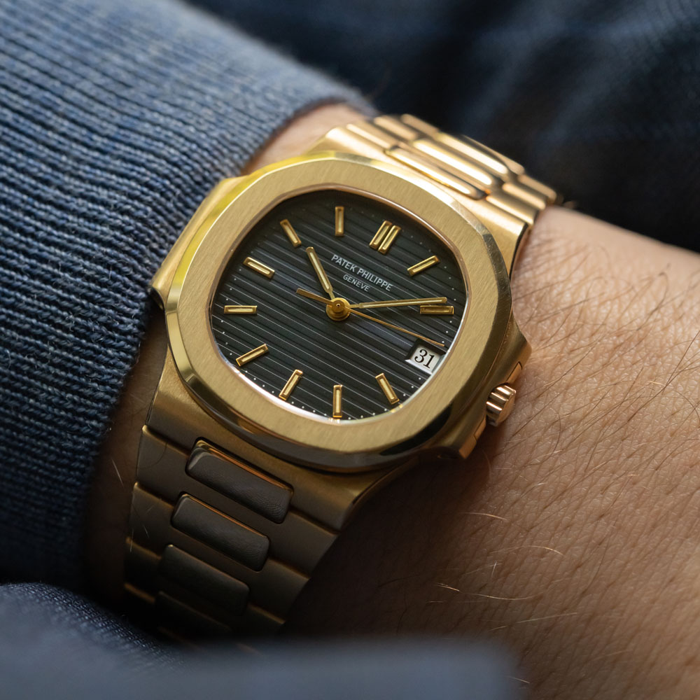 Il Patek Philippe Nautilus è l’oggetto-culto e rappresenta, anche oggi, il binomio “sportivo-elegante” per eccellenza. La referenza 3800 nasce nel 1981 e viene sviluppata per sopperire al lento avvio del modello originale e per “vestire” i polsi più sottili. Come tutti gli esemplari del Nautilus, anch’essa possiede l’iconica architettura ad “oblò” con costruzione monoblocco fondo cassa – carrure e lunetta serrata sulle sporgenti anse laterali attraverso quattro viti orizzontali.