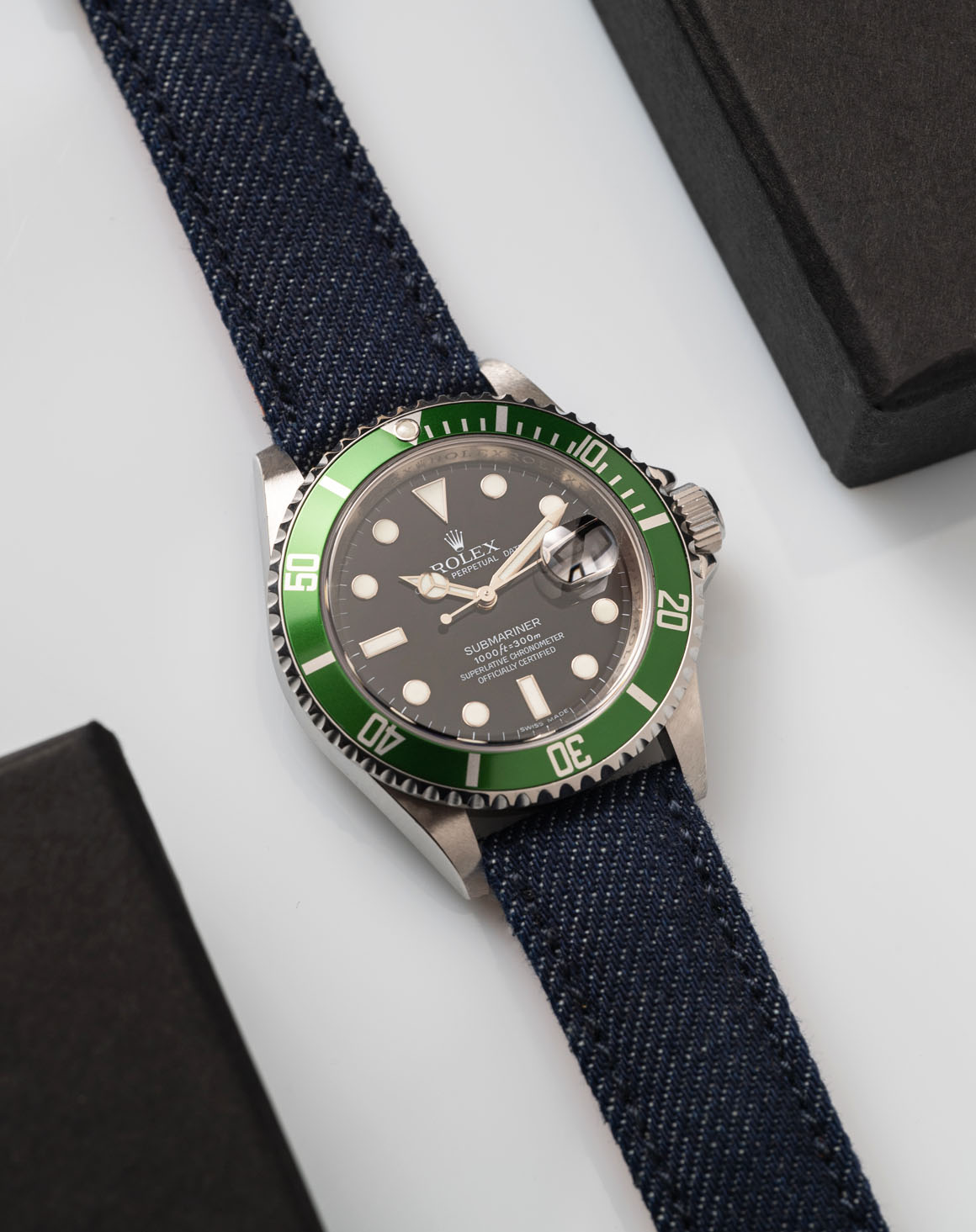 Realizzato in collaborazione con Candiani Denim, il Ticinese è un cinturino dal design contemporaneo perfetto per orologi moderni e sportivi. Prodotto in denim KR7176 KN-Durance Rinser blu con fodera interna in pelle di vitello color arancione, si presenta come un demi-bobé ribordato con cuciture tono su tono abbinato ad una chiusura ad ardiglione in acciaio lucida o satinata.