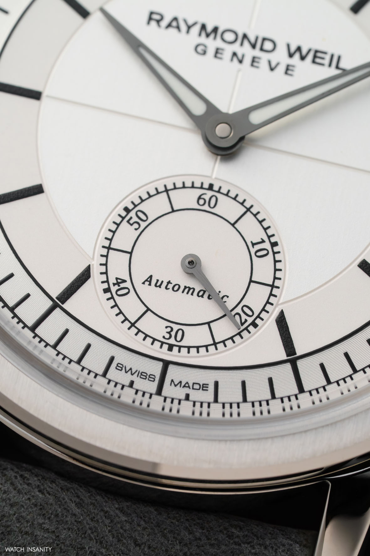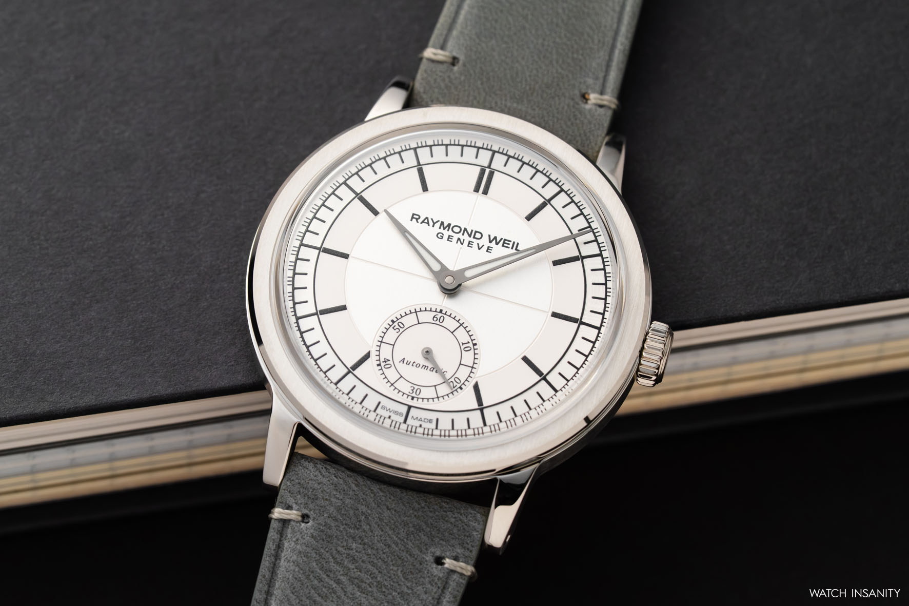 Partiamo dal Millesime Small Seconds con quadrante silver, che al GPHG 2023 ha portato lustro a Raymond Weil. Ciò che salta all’occhio è l’equilibrio e la pulizia delle forme. Chiamarla estetica neo-vintage è forse riduttivo, perché nella costruzione del Millesime Small Seconds Raymond Weil ha condensato presente, passato e futuro, specialmente nel disegno del quadrante e nelle sue finiture.