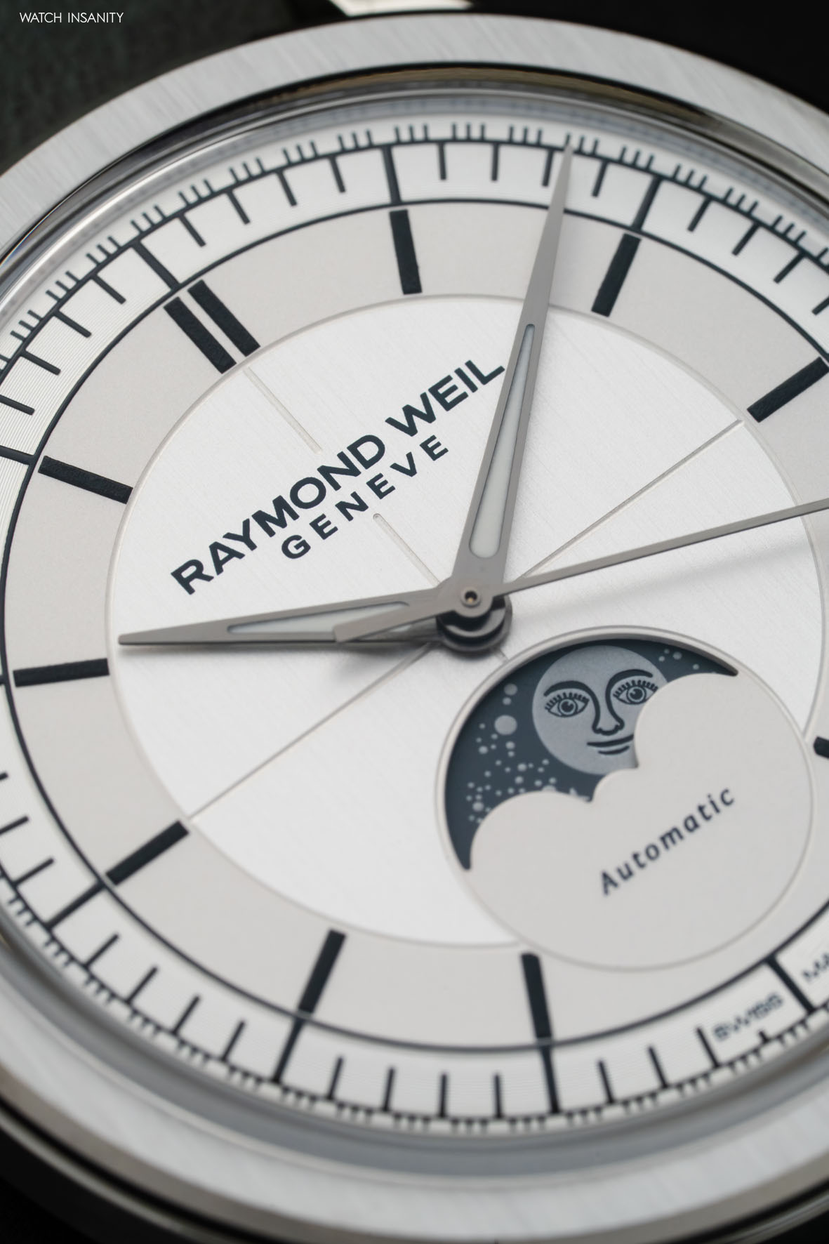 La complicazione delle fasi lunari non poteva mancare in una collezione dal sapore retrò come la Millesime. Ecco allora che Raymond Weil l’ha arricchita con la linea Moon Phase, che condivide con le altre la stessa tensione alla pulizia delle forme e alla leggibilità delle informazioni. La finestra delle fasi lunari è posta a ore 6, ha le stesse proporzioni del quadrante dei piccoli secondi del Millesime Small Seconds ed è spostata leggermente più in alto, più distanziata dal giro della minuteria.