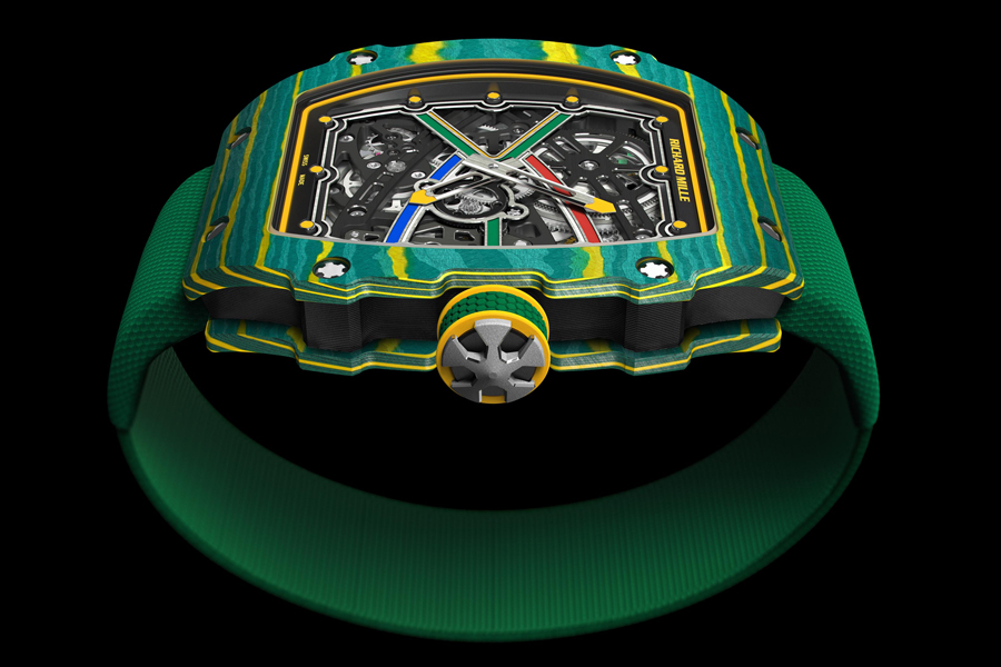 Partendo dal desiderio di creare un orologio che si adattasse all’atleta come una seconda pelle, il team Richard Mille ha rielaborato il progetto dell’RM 67-01 “la cui leggerezza, sottigliezza ed ergonomia ne facevano un candidato ideale” conferendogli una nuova attitudine.