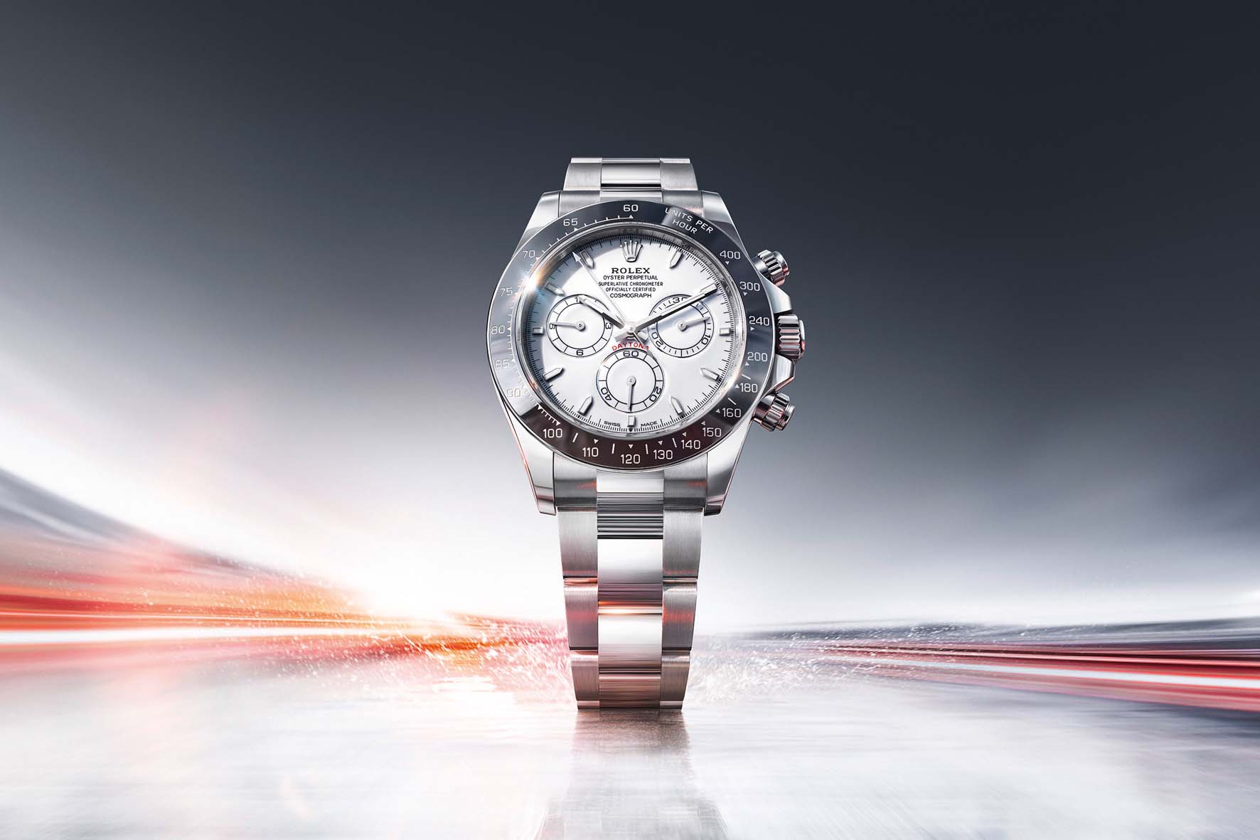 Il quadrante smaltato bianco, realizzato secondo la tecnica Grand Feu, si distingue per la profondità della superficie e per la qualità della finitura, mantenendo nel tempo stabilità e intensità cromatica. I contatori cronografici si integrano con precisione nella composizione, assicurando una lettura chiara delle informazioni. La cassa Oyster, di 40 mm e impermeabile fino a 100 metri, conserva la costruzione robusta tipica del modello, con carrure monoblocco, fondello a vite e corona Twinlock. Il bracciale Oyster a tre file, dotato di fermaglio di sicurezza Oysterlock, garantisce stabilità e comfort anche in condizioni di utilizzo dinamiche.