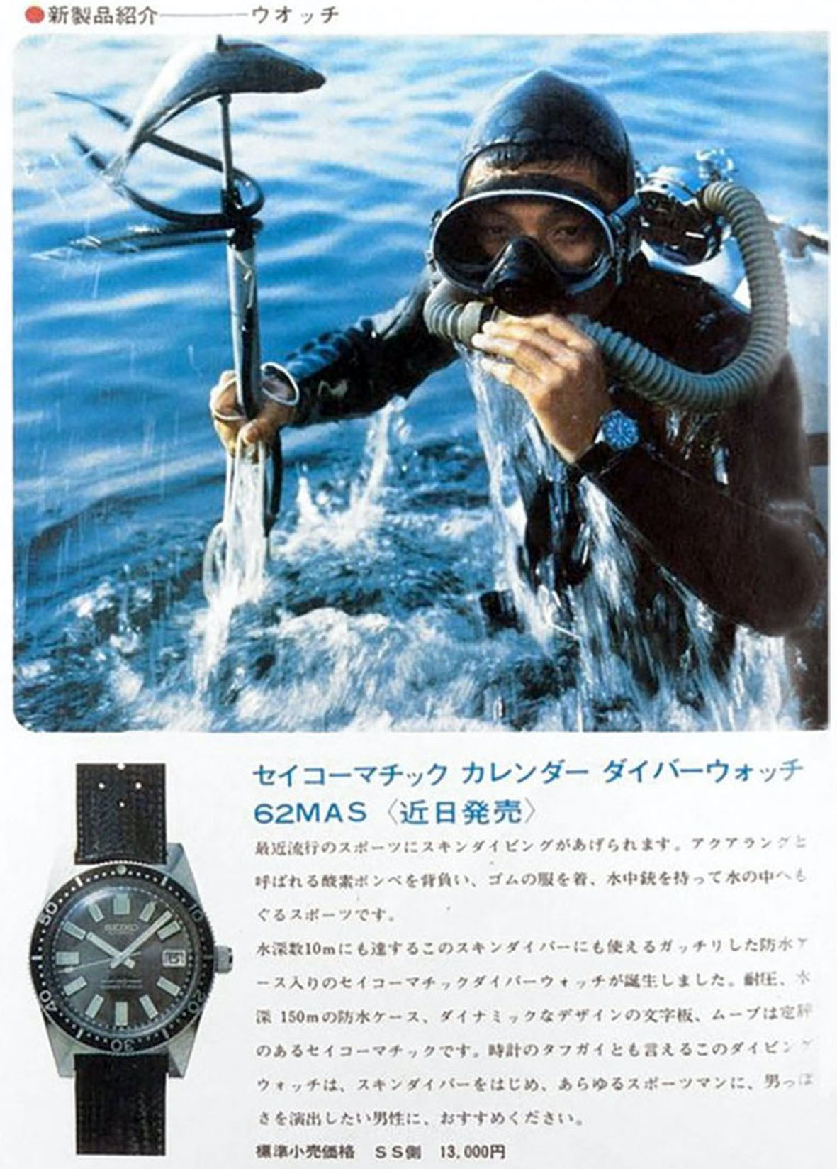 Quanto sia stato importante quel diver per lo sviluppo degli orologi subacquei, non solo del marchio giapponese, è ormai storia. Gran parte di ciò che è venuto dopo è stato semplicemente una variazione sul tema di quel segnatempo, il cui nome ufficiale era 62 Seikomatic Calendar Diver’s Watch. Probabilmente la definizione di 62MAS deriva dalle prime due cifre del numero di referenza (6217-8000) e dal termine “autoMAtic Selfdater”.