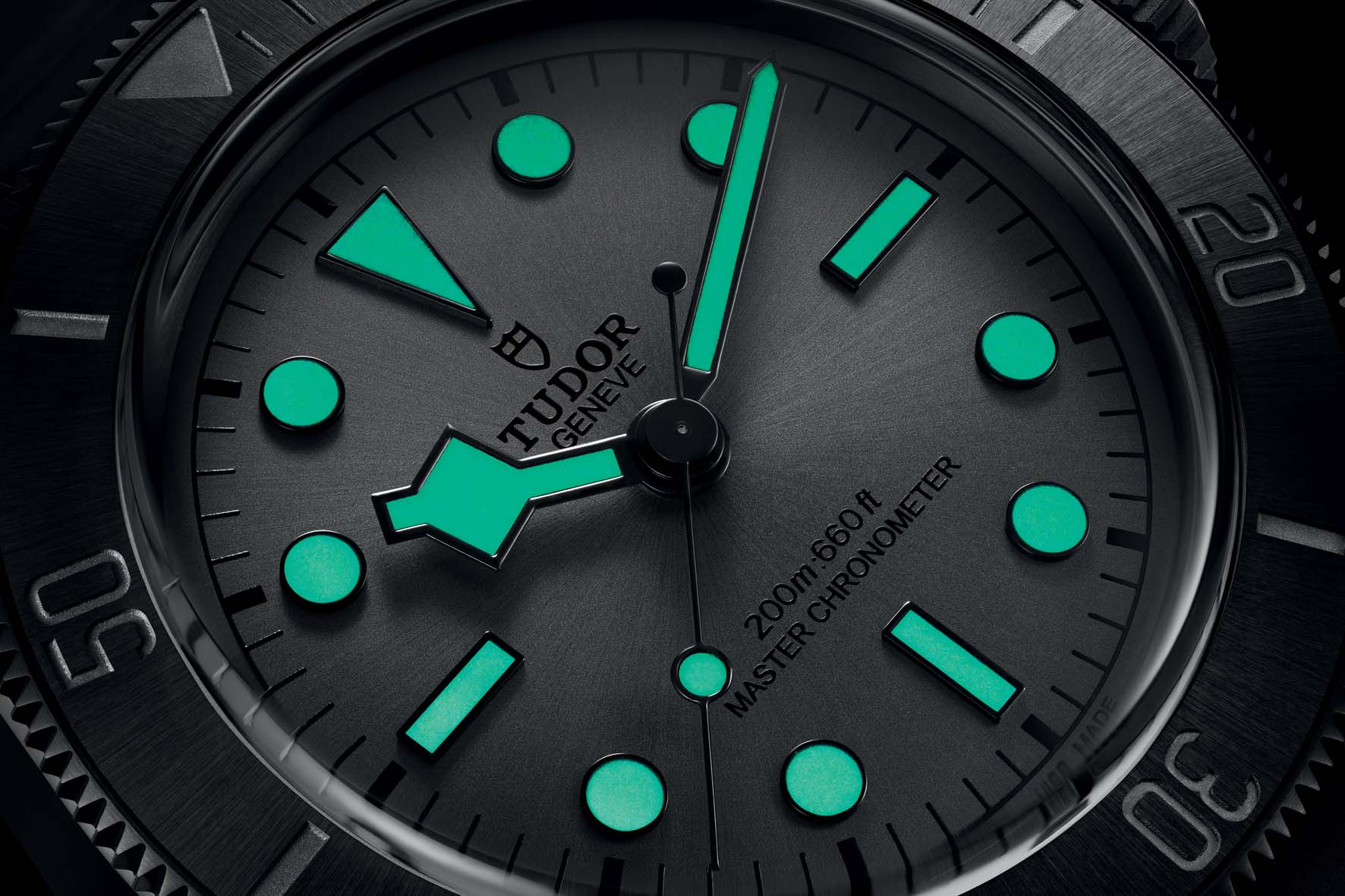 La lunetta girevole unidirezionale combina acciaio 316L con trattamento PVD nero e un inserto in ceramica nera con finitura soleil. Gli indici incisi garantiscono una leggibilità sempre netta, coerente con il DNA del diver Tudor. Sul quadrante antracite bombato, la finitura soleil introduce una profondità sottile. Le iconiche lancette Snowflake Tudor, firma del brand dal 1969, sono trattate con Swiss Super-LumiNova Grade A, assicurando visibilità anche al buio. La corona di carica a vite, in acciaio 316L con trattamento PVD nero e rosa Tudor in rilievo, è completata dal tubo della corona in acciaio satinato con lavorazione circolare, un dettaglio tecnico discreto ma coerente con la qualità complessiva.