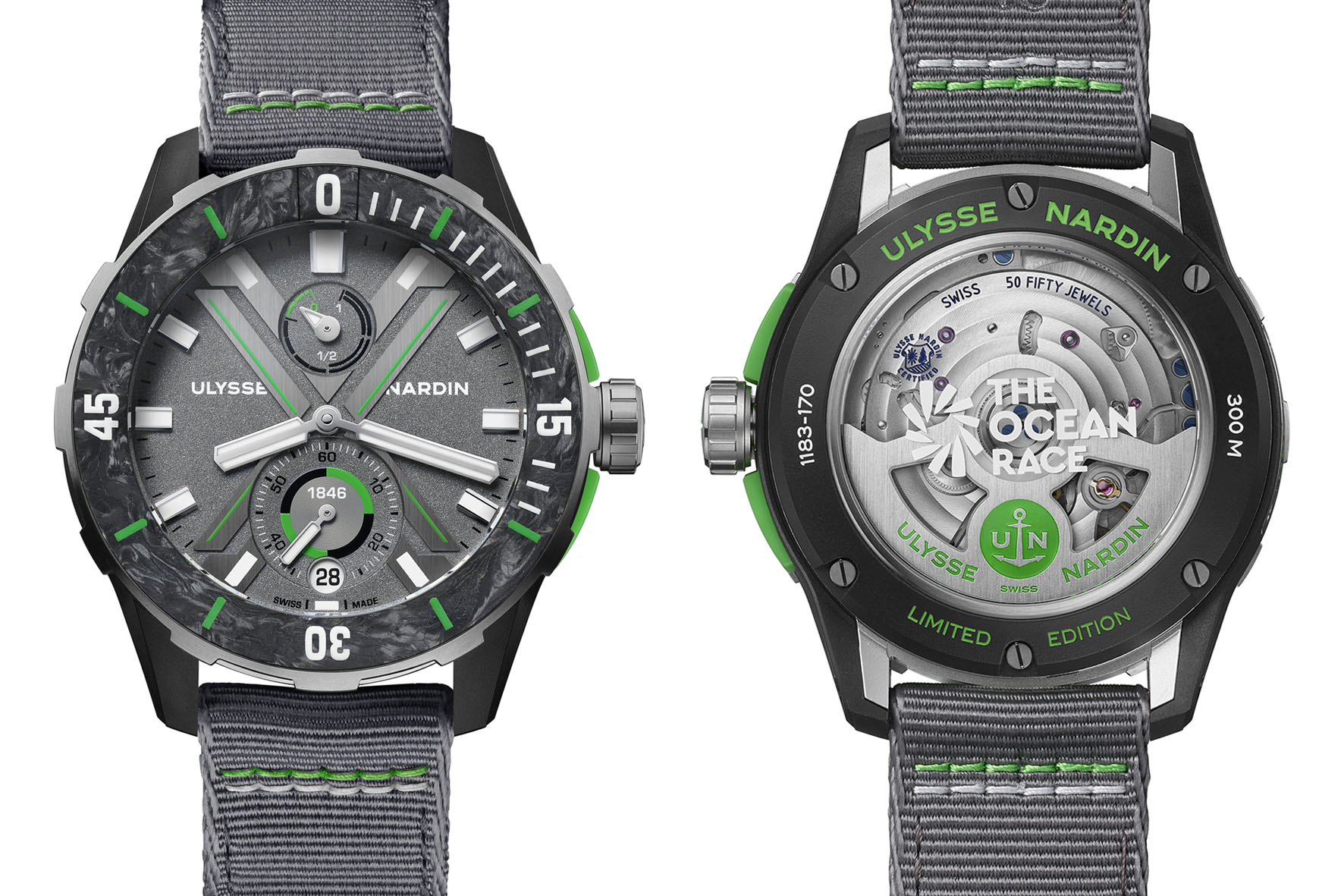 I componenti di questo movimento provengono per il 95% da un raggio di 30 km dalla Manifattura, la metà dei quali proviene da canali di riciclaggio (in particolare acciaio e ottone riciclati: il 100% dei movimenti Ulysse Nardin utilizza ottone riciclato). Il DIVER THE OCEAN RACE incarna innovazione e tradizione, poiché il suo movimento conserva il suo know-how storico. Il calibro di un orologio con queste proprietà è per sua natura un prodotto sostenibile poiché funziona con il movimento del polso.