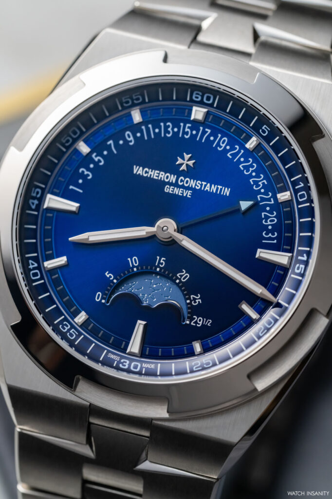 Ebbene, per il suo Overseas con fasi lunari e data retrograda Vacheron Constantin è riuscita a inserire tutte queste indicazioni all’interno del quadrante senza sacrificare la loro leggibilità e senza snaturare l’anima sportiva della collezione. Un rischio che era dietro l’angolo, proprio perché l’indicazione retrograda, tipica delle collezioni più eleganti, avrebbe potuto spostare l’equilibrio dell’orologio verso un segmento più classico. Non è accaduto.