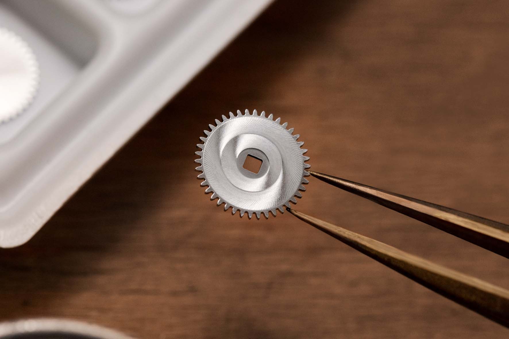 Il calibro monta infatti questa soluzione tecnica realizzata in rame-berillio da Atokalpa. Parliamo di un’azienda svizzera in grado di produrre tutti gli elementi necessari per assemblare un bilanciere e capace di padroneggiare la produzione completa e complessa dell’organo regolatore, anche grazie a un reparto interno che costruisce le proprie macchine. Non a caso, fornisce i propri prodotti ad alcuni tra i più pregiati marchi svizzeri.