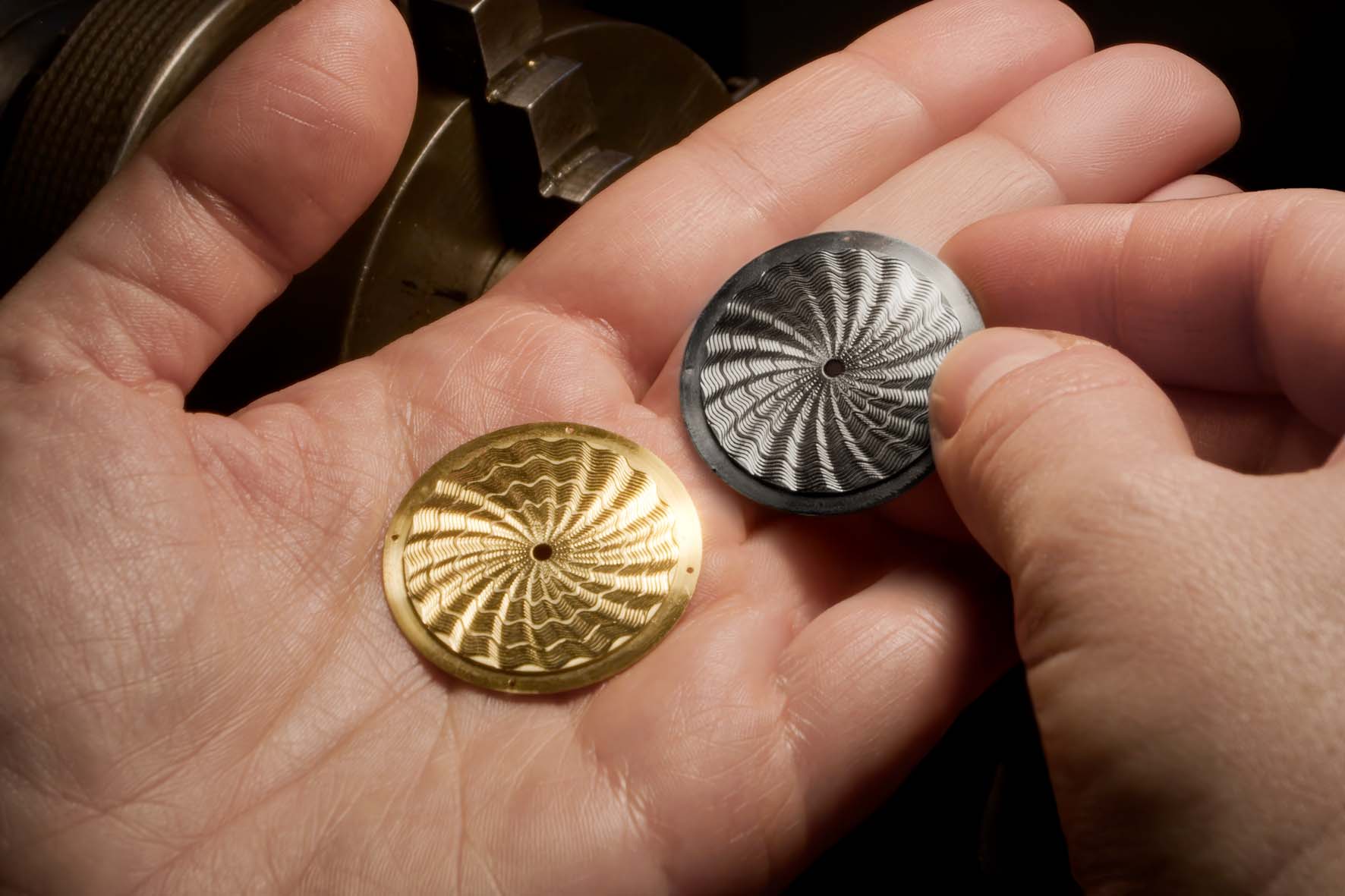 Linda Renzetti, quarta generazione della famiglia, incide ciascun quadrante interamente a mano su antichi torni a rosa del XIX secolo, con un motivo che riflette la luce in modo dinamico, come farebbero le onde al quale esso si ispira. Il quadrante di Redentore Utopia II è stato lavorato con un macchinario in ghisa della seconda metà del’800, talmente pesante che non può essere spostato dalla posizione in cui si trova. Esattamente ciò che i fratelli Morelli volevano e che hanno elaborato partendo da alcune texture d’epoca trovate negli archivi dell’Atelier Renzetti che si avvicinavano a quanto Alberto e Alessandro avevano in mente.