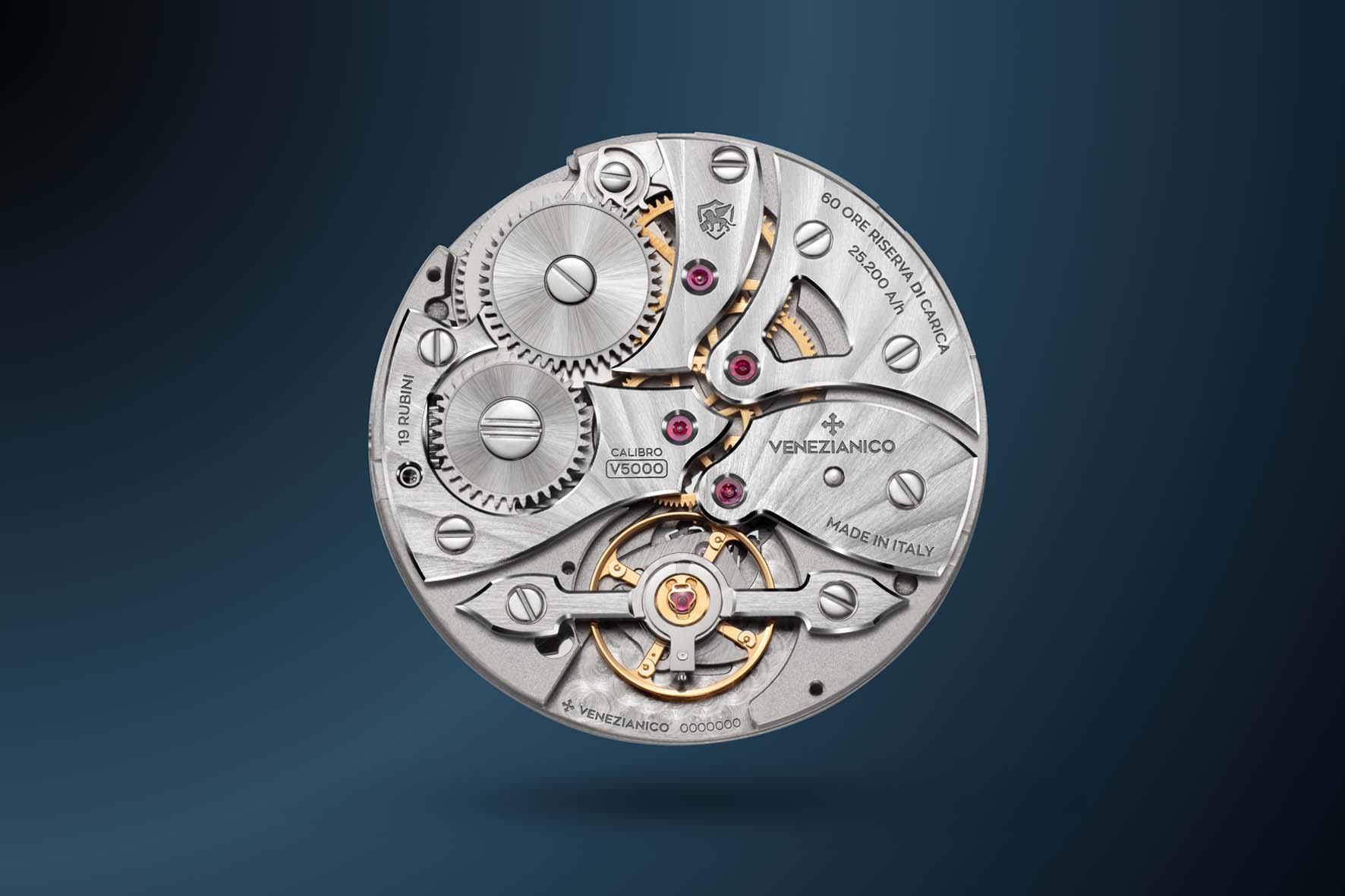 «Siamo partiti da una base interessante ma sapevamo che poteva essere migliorata – continua Morelli -. Circa 4 anni fa abbiamo conosciuto Fausto Berizzi, all’epoca responsabile tecnico di OISA. Abbiamo avuto da subito una grande intesa che ci ha portato all’idea di sviluppare un calibro nostro, insieme al loro team altamente qualificato. Abbiamo iniziato a disegnare il nuovo calibro con il loro supporto e nel corso dei primi mesi abbiamo validato la nuova architettura insieme a Berizzi. Dopo diverse varianti siamo arrivati a una soluzione definitiva, ai successivi tuning e alle finiture. Quella fase è durata diversi mesi e ci ha portato alla variante V5000. Dopo due anni di test, con la sua esperienza siamo riusciti a portare il calibro, grazie alla regolazione fine, a una precisione di ±3 secondi al giorno. Abbiamo sentito fin dall’inizio la responsabilità di portare avanti uno sviluppo non solo del nostro brand, ma cercando allo stesso tempo di fare da apripista per una nuova stagione dell’orologeria italiana».
