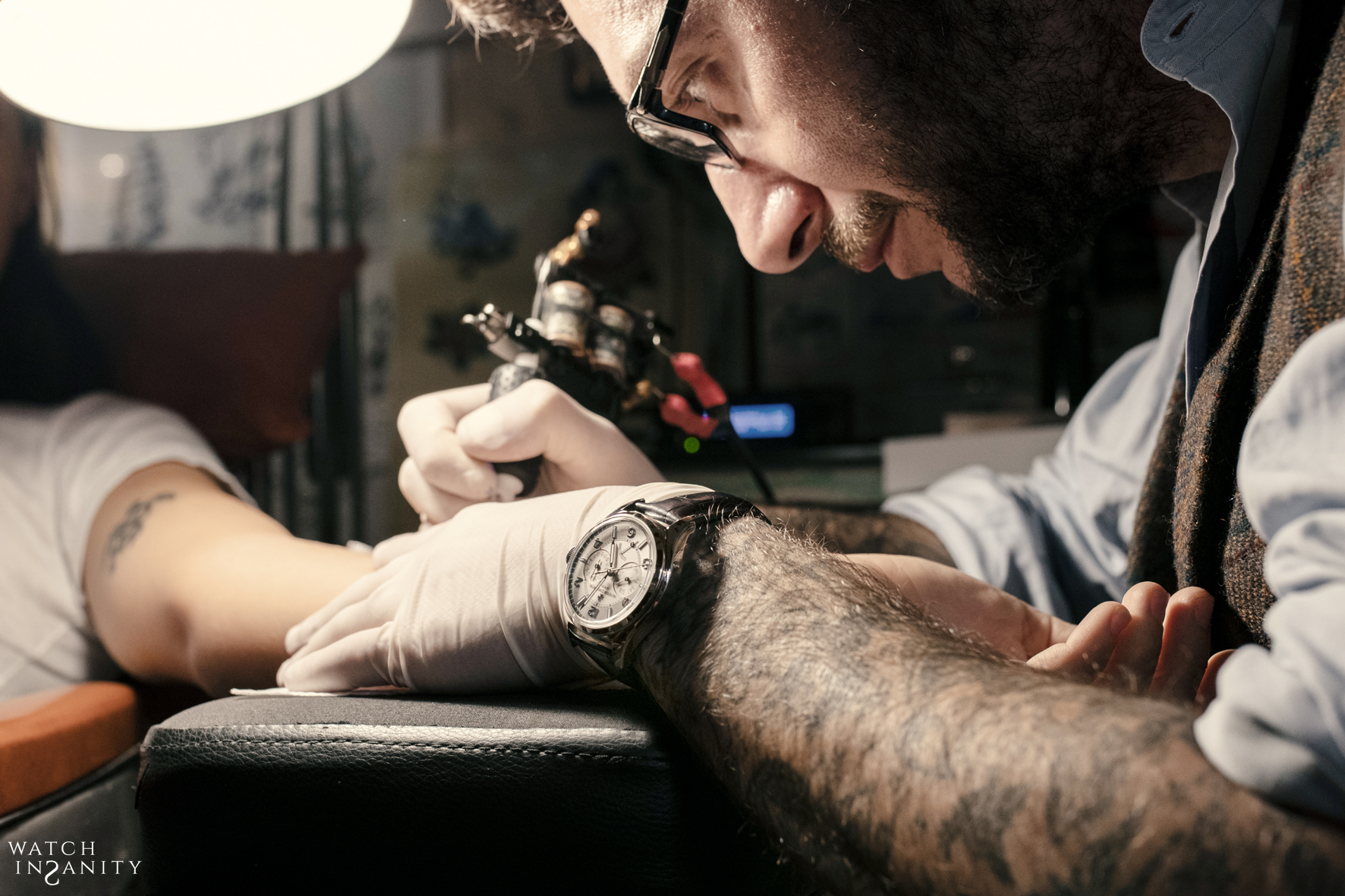 Due mondi apparentemente lontani, quelli dell’Alta Orologeria e del tatuaggio, che in realtà sono molto vicini e affini, come ci conferma Mattia: “Abbiamo molto in comune. In primis, la precisione. E’ elemento imprescindibile in entrambi i settori. Poi l’attenzione e la cura verso il dettaglio. Il mondo dell’alta orologeria è effettivamente molto affine a quello che è il mio lavoro. Niente è lasciato al caso, e solo con l’amore e la dedizione si ottengono risultati di alto livello”.