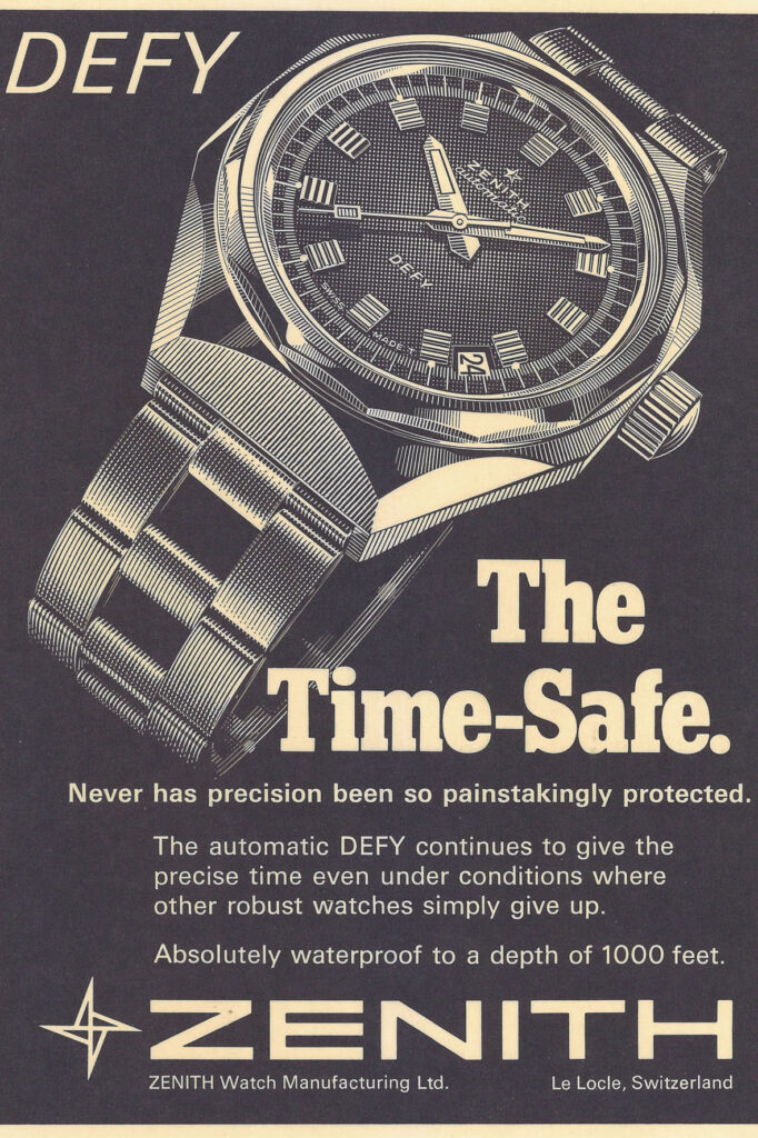 Come abbiamo visto, una delle missioni che Zenith si è posta fin dalla fondazione è quella di unire eccellenza meccanica e ricerca estetica. Dalla fine del XIX secolo, lo spirito pionieristico della Maison l’ha portata ad adottare un approccio innovativo, combinando arte e industria. Sotto l’influenza di maestri dell’Art Nouveau come Alphonse Mucha, René Lalique e Alphonse Laverrière, Zenith combinò tecnica orologiera ed estetica per creare segnatempo caratterizzati da armonia e design d’avanguardia. Furono gli anni ’60 del ‘900 il periodo in cui la creatività del brand ebbe libero sfogo. La robustezza della cassa “safe-box” del Defy (chiamato non a caso “cassaforte del tempo”), con la sua lunetta a 14 lati e gli angoli acuti prefigurò l’era degli orologi sportivi con bracciale integrato. Allo stesso tempo, il lancio dell’El Primero nel 1969 ridefinì gli standard dei cronografi. Con i suoi quadranti tricolori e gli originali quadranti ispirati al poker-chip del G383, Zenith consolidò la propria reputazione di marchio dal design audace.