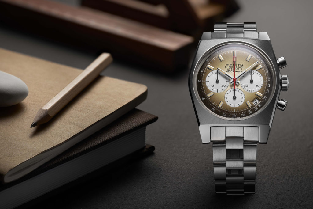 Il 1969 è stato certamente un anno da ricordare per Zenith: un anno che è entrato nella storia dell’orologeria e che ha cambiato per sempre il concetto di cronografo. Un anno in cui Zenith El Primero, il primo cronografo automatico ad alta frequenza in assoluto, è stato lanciato in tutto il mondo. Il suo debutto è avvenuto con tre diversi modelli in acciaio inossidabile. Uno di questi era l’A385, un cronografo in acciaio di forma tonneau con un affascinante quadrante sfumato di colore marrone, il primo quadrante “fumé” mai realizzato nell’industria orologiera e per Zenith.