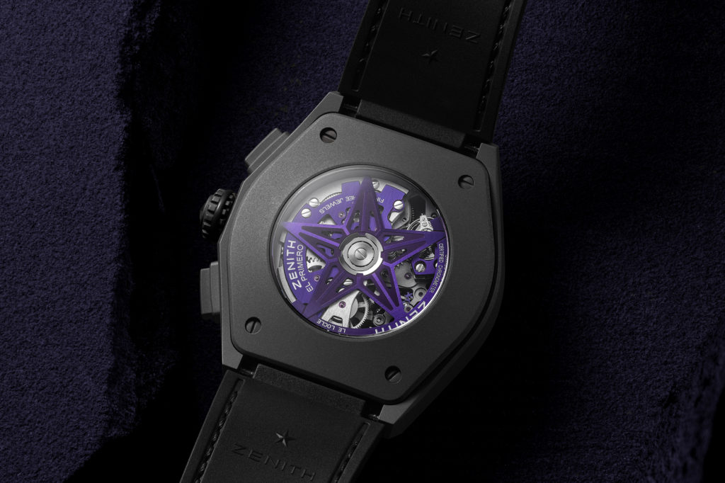 Per la prima volta nel mondo dell’orologeria, Zenith ha realizzato in esclusiva un movimento cronografico automatico di colore viola. Non si tratta di un cronografo qualunque: Zenith ha infatti scelto El Primero 21, il suo rivoluzionario calibro cronografico con precisione di lettura al 1/100 di secondo che oscilla all’incredibile frequenza di 36.000 alternanze ora.